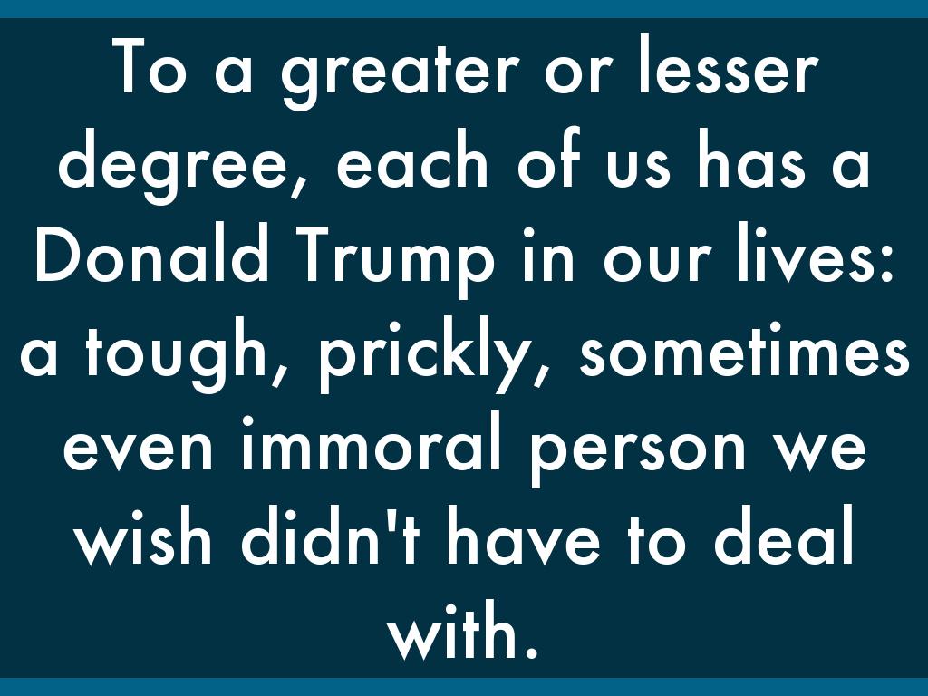 To a greater or lesser degree, each of us has a Donald Trump in our lives: a tough, prickly, sometimes even immoral person we wish didn't have to deal with.