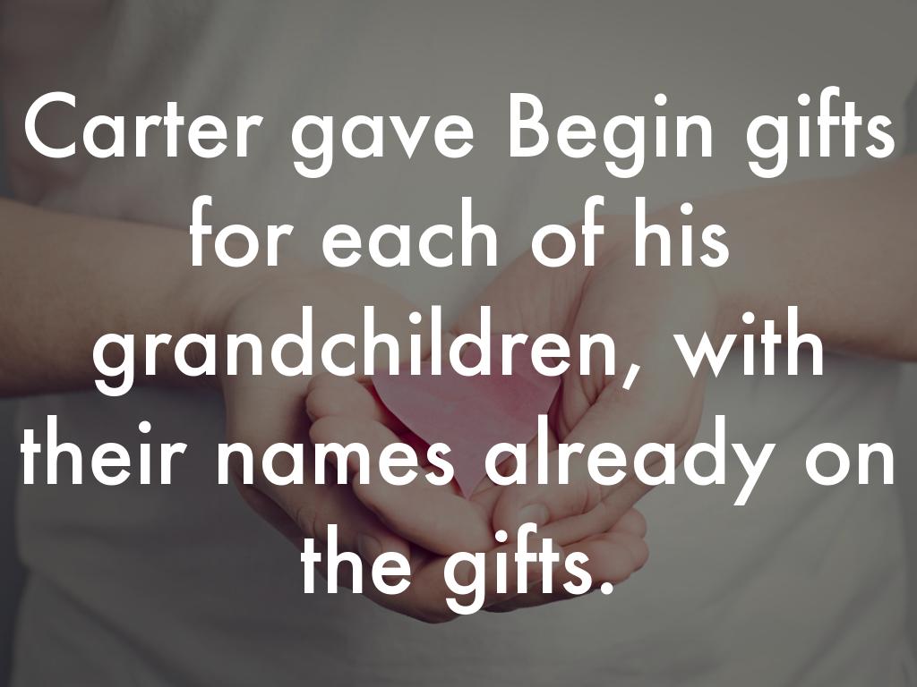 Carter gave Begin gifts for each of his grandchildren, with their names already on the gifts.