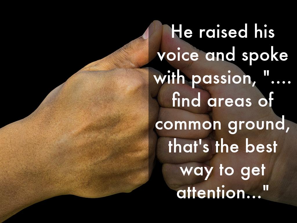 He raised his voice and spoke with passion, ".... find areas of common ground, that's the best way to get attention..."