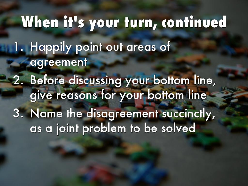 - Before or instead of discussing your bottom line, give the reasons for your bottom line