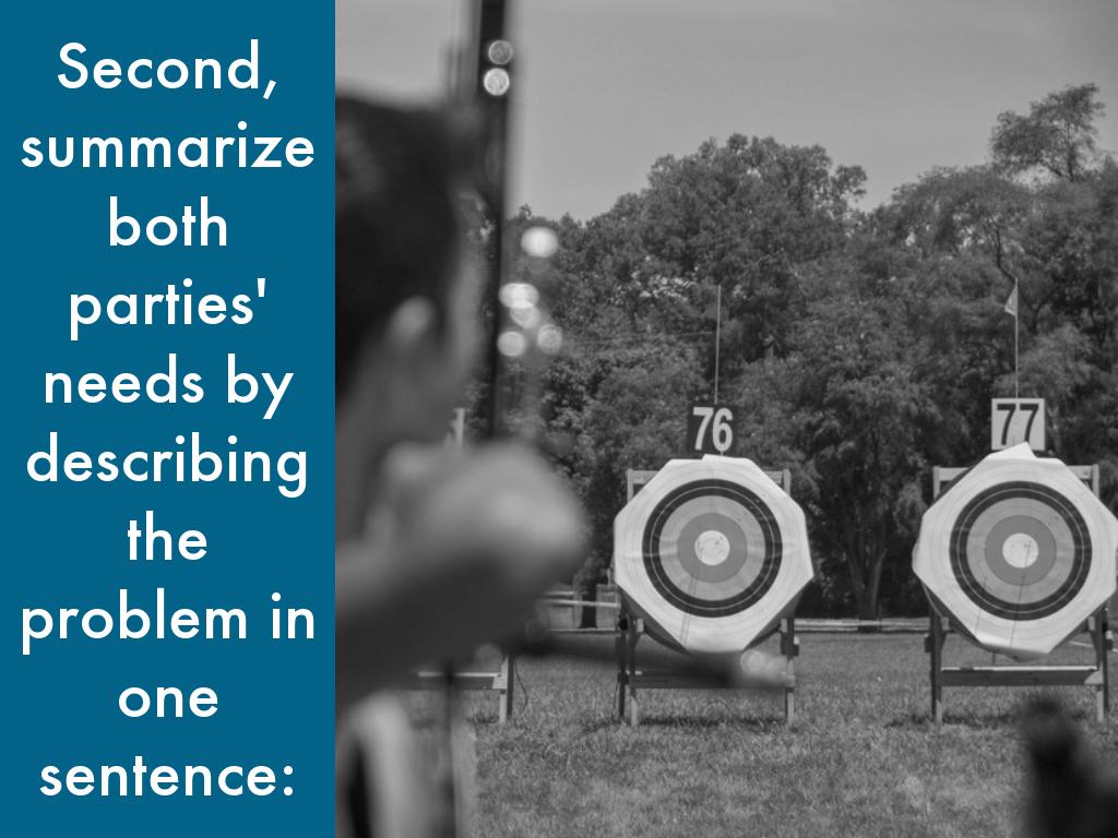 Second, summarize both parties' needs by describing the problem in one sentence: