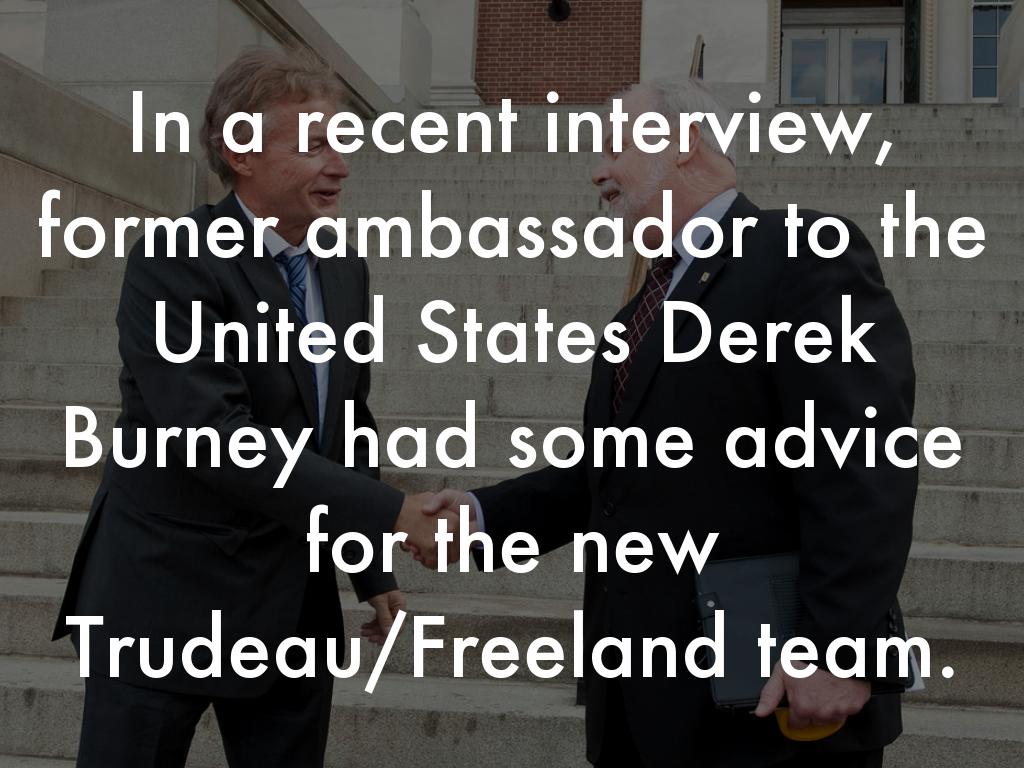 In a recent interview, former ambassador to the United States Derek Burney had some advice for the new Trudeau/Freeland team.
