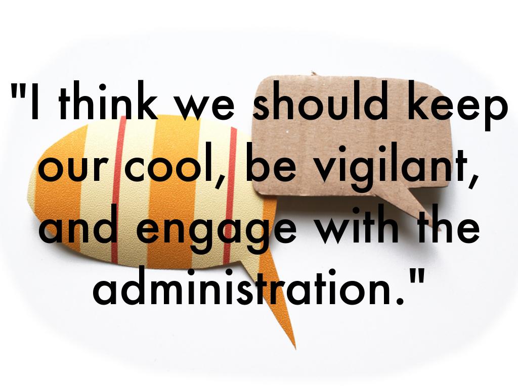 "I think we should keep our cool, be vigilant, and engage with the administration."