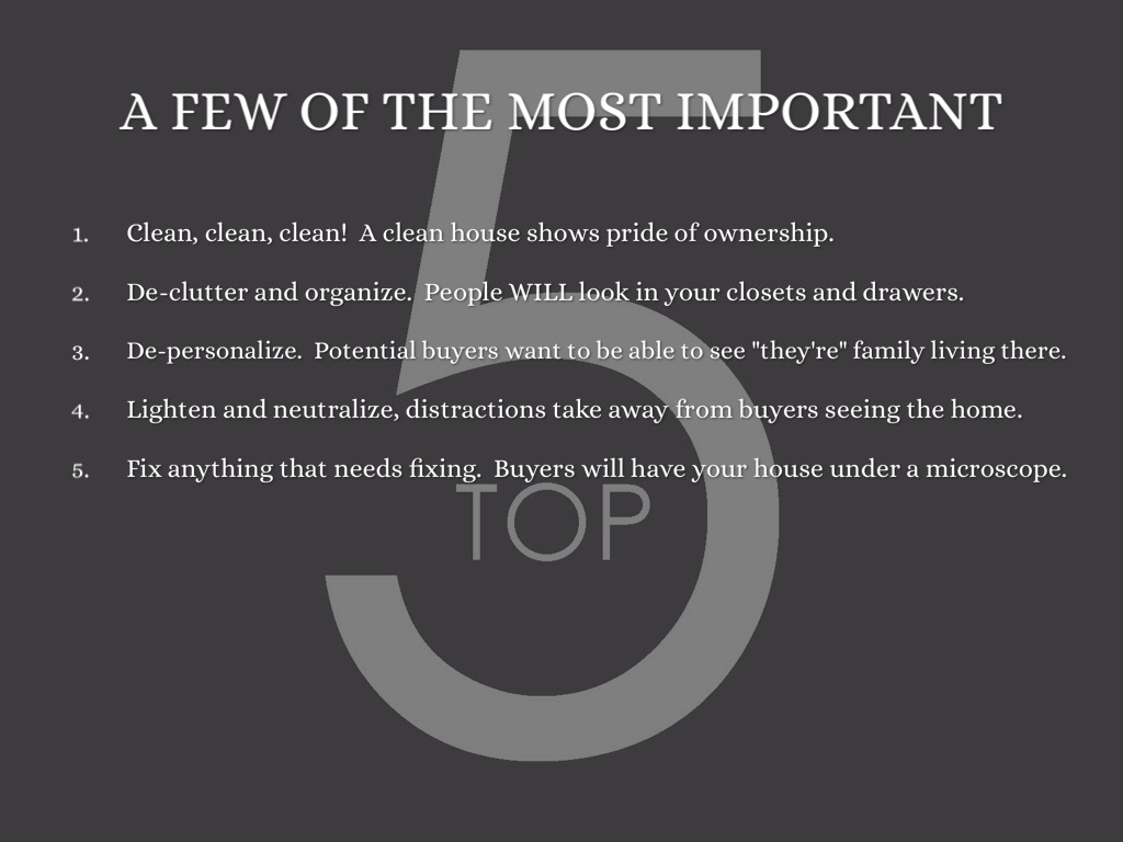 - Clean, clean, clean! A clean house shows pride of ownership.