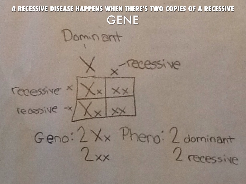 A RECESSIVE DISEASE HAPPENS WHEN THERE'S TWO COPIES OF A RECESSIVE