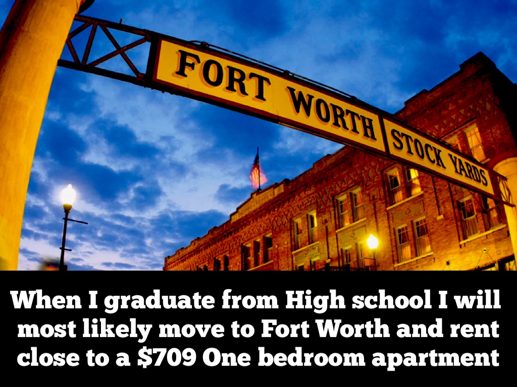 When I graduate from High school I will most likely move to Fort Worth and rent close to a $709 One bedroom apartment
