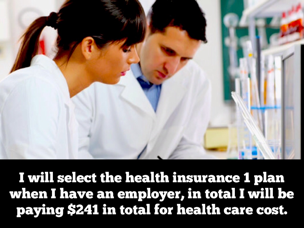I will select the health insurance 1 plan when I have an employer, in total I will be paying $241 in total for health care cost.