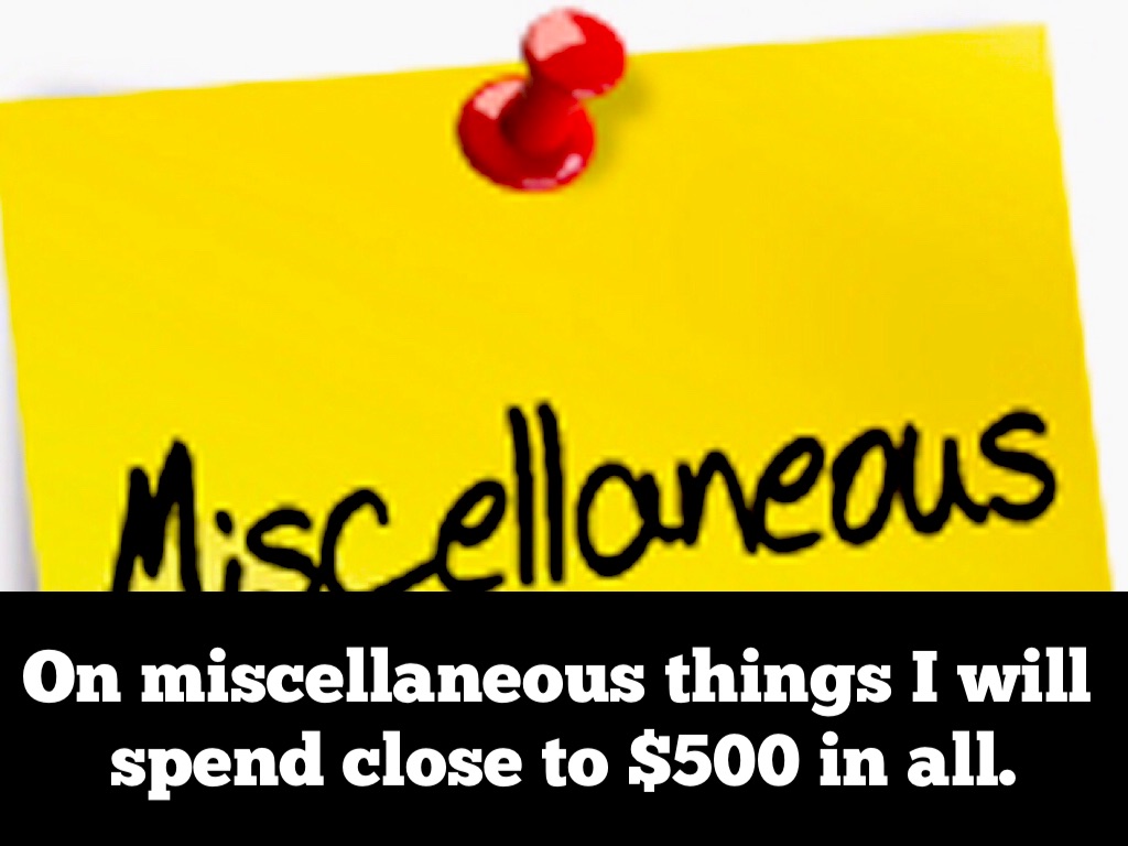 On miscellaneous things I will spend close to $500 in all.
