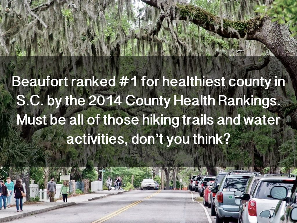 Beaufort ranked #1 for healthiest county in S.C. by the 2014 County Health Rankings. Must be all of those hiking trails and water activities, don’t you think?