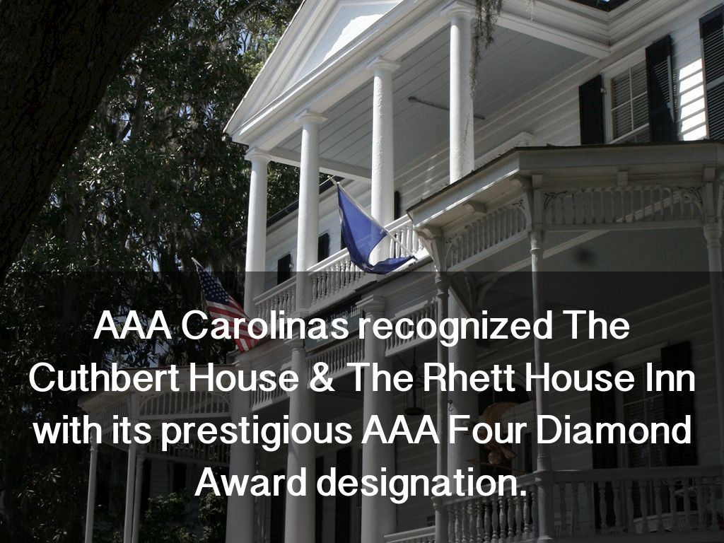 AAA Carolinas recognized The Cuthbert House & The Rhett House Inn with its prestigious AAA Four Diamond Award designation.