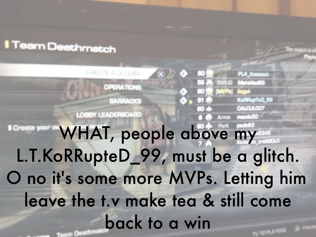 WHAT, people above my L.T.KoRRupteD_99, must be a glitch. O no it's some more MVPs. Letting him leave the t.v make tea & still come back to a win