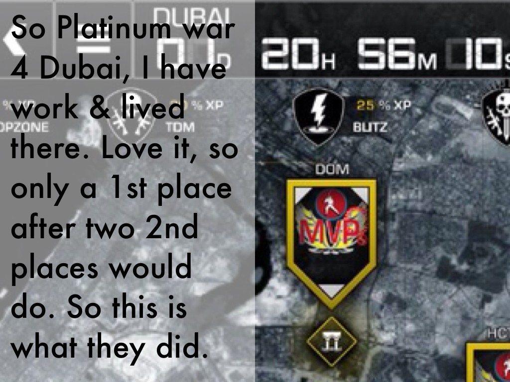 So Platinum war 4 Dubai, I have work & lived there. Love it, so only a 1st place after two 2nd places would do. So this is what they did.