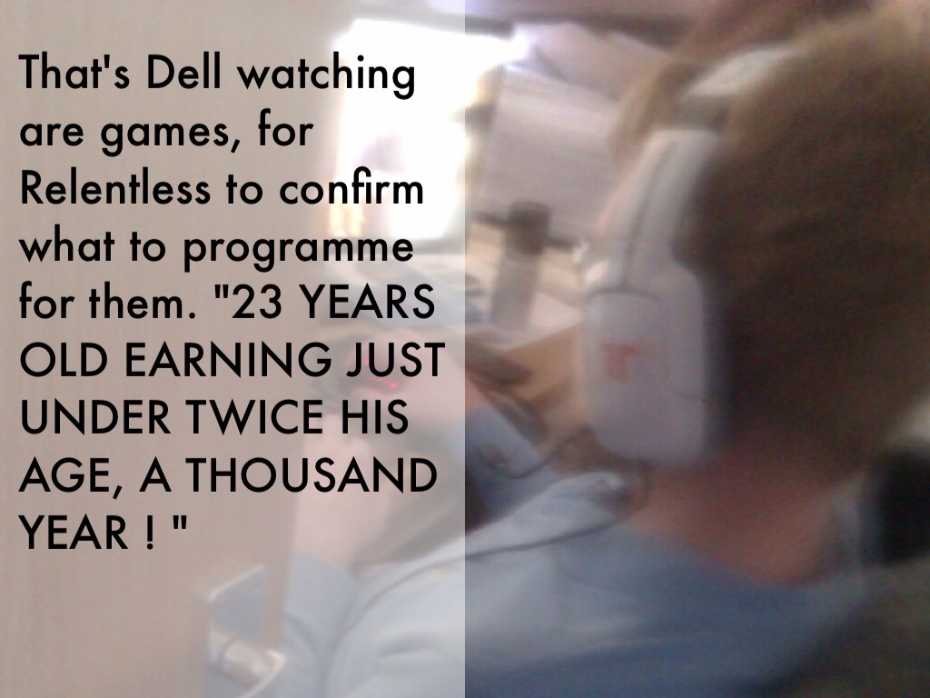 That's Dell watching are games, for Relentless to confirm what to programme for them. "23 YEARS OLD EARNING JUST UNDER TWICE HIS AGE, A THOUSAND YEAR ! "