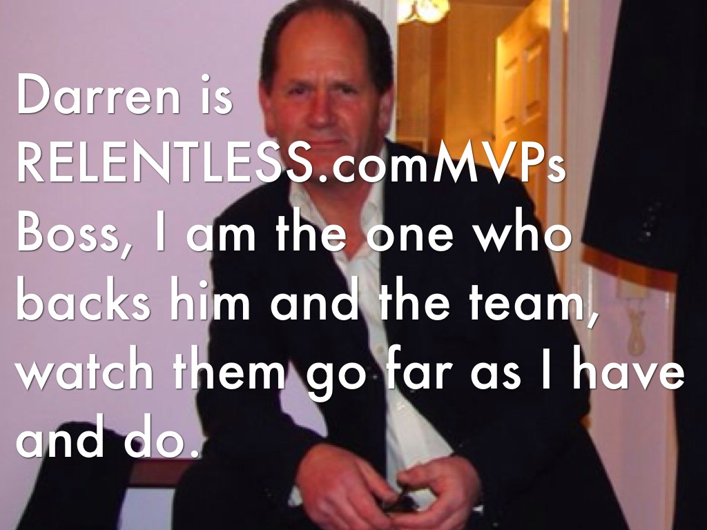 Darren is RELENTLESS.comMVPs Boss, I am the one who backs him and the team, watch them go far as I have and do.