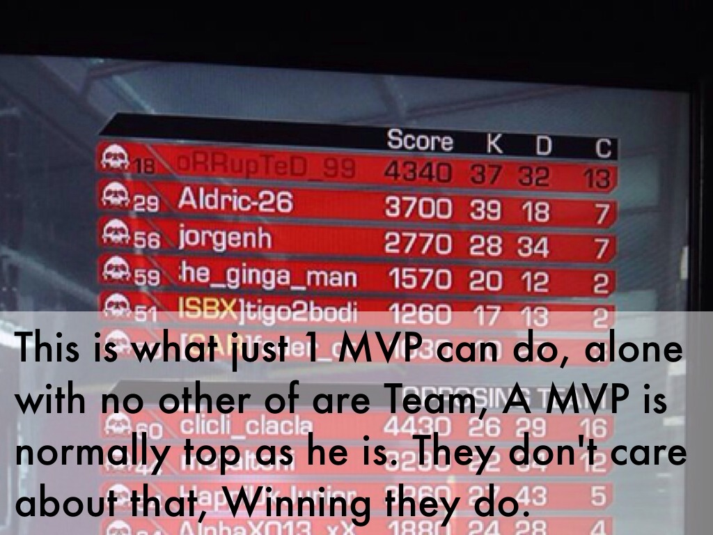 This is what just 1 MVP can do, alone with no other of are Team, A MVP is normally top as he is. They don't care about that, Winning they do.