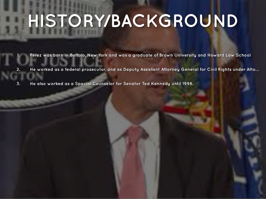 Perez has served as the Assistant Attorney General for the Civil Rights Division of the United States Department of Justice.