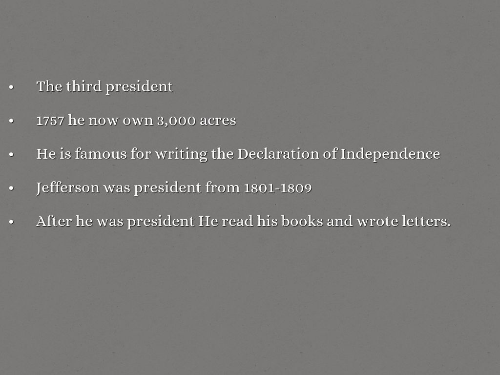 • E-mail. "10 Things You Didn’t Know about Thomas Jefferson." Washington Post. The Washington Post, 16 Feb. 2012. Web. 20 Apr. 2014.