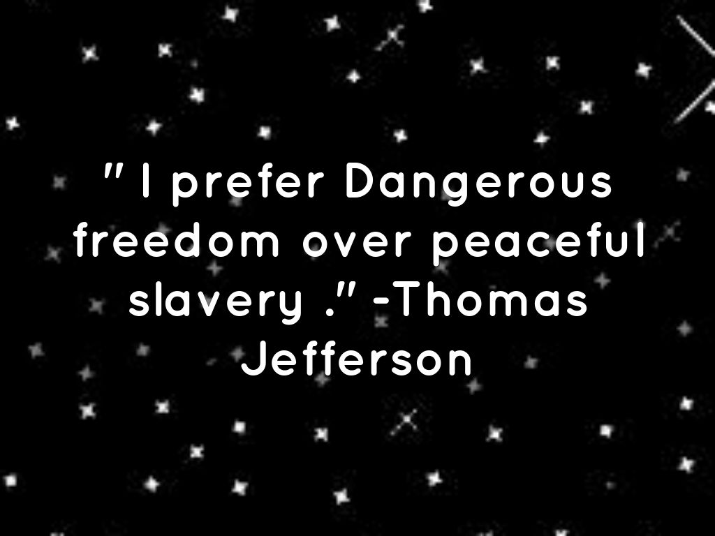 " I prefer Dangerous freedom over peaceful slavery ." -Thomas Jefferson