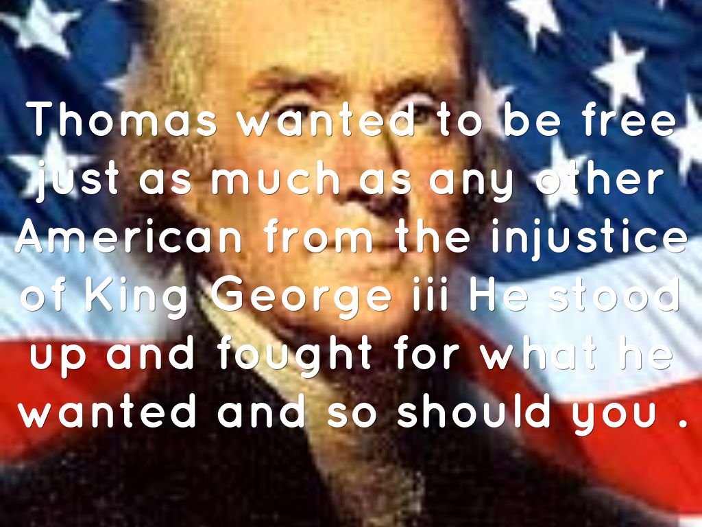 Thomas wanted to be free just as much as any other American from the injustice of King George iii He stood up and fought for what he wanted and so should you .