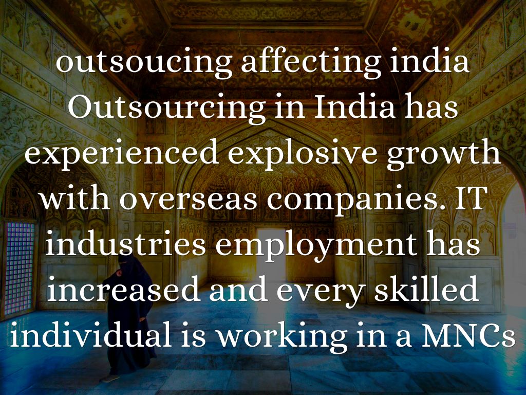 Outsourcing in India has experienced explosive growth with overseas companies. IT industries employment has increased and every skilled individual is working in a MNCs