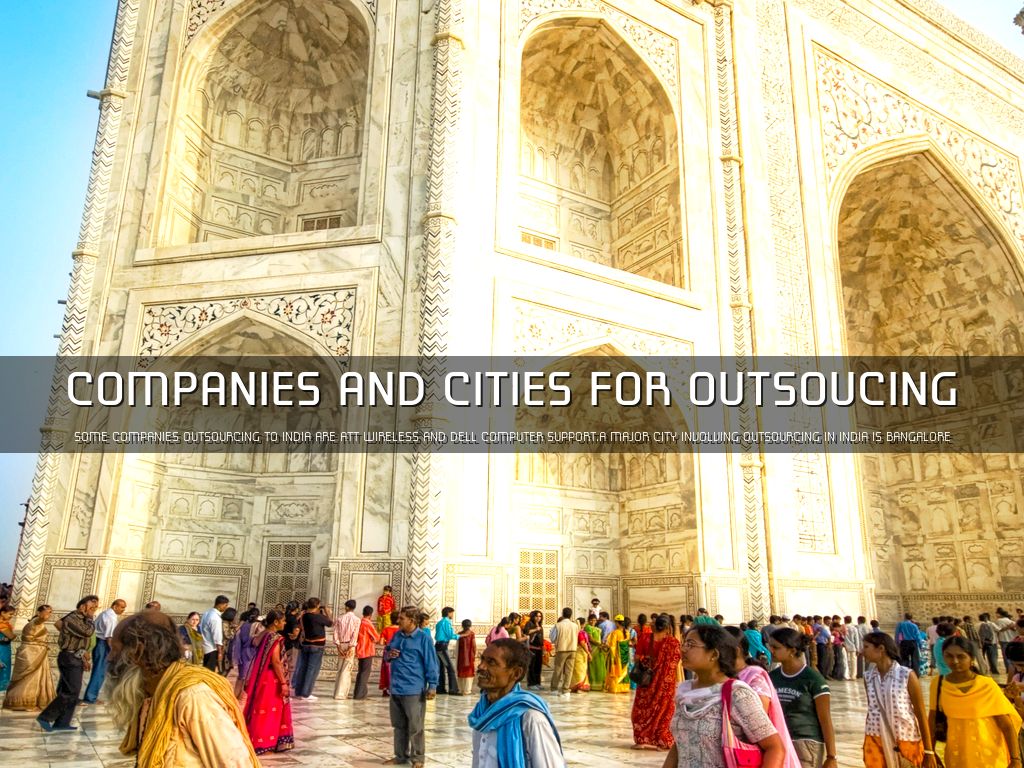 some companies outsourcing to india are ATT wireless and DELL computer support.A major city involving outsourcing in india is Bangalore