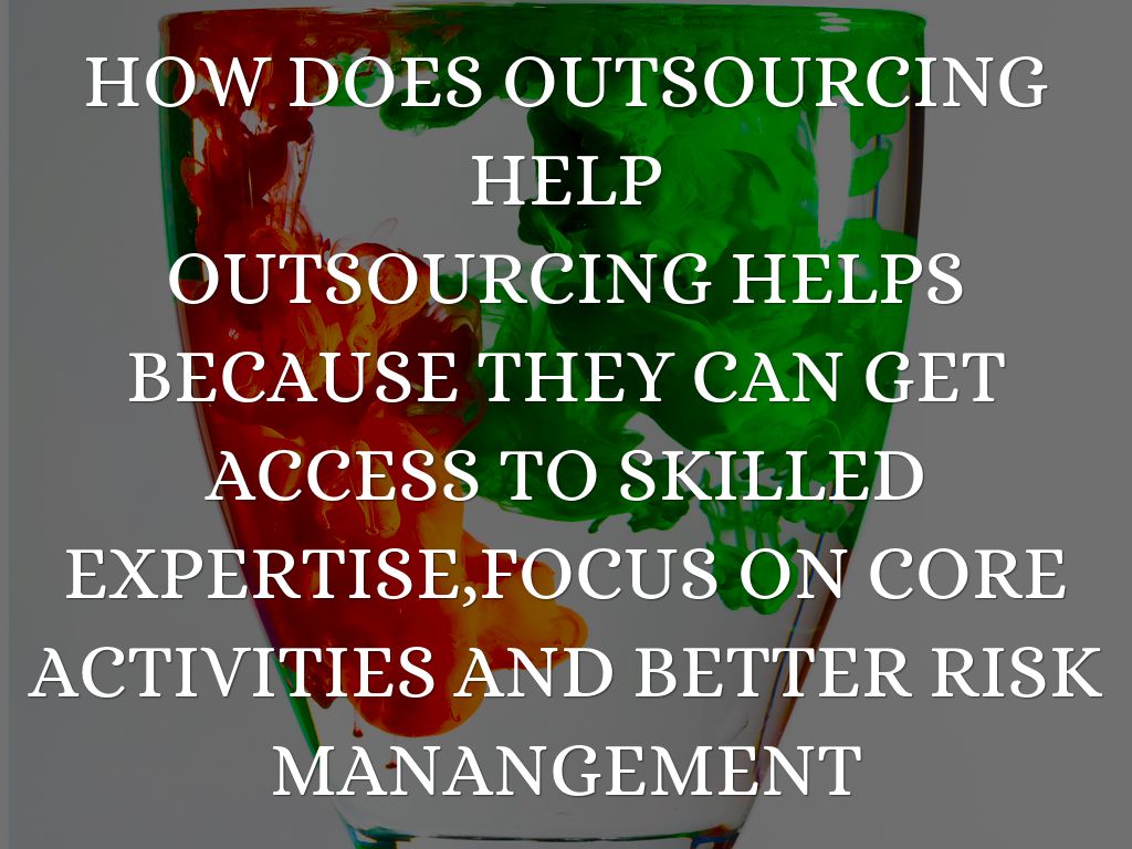 OUTSOURCING HELPS BECAUSE THEY CAN GET ACCESS TO SKILLED EXPERTISE,FOCUS ON CORE ACTIVITIES AND BETTER RISK MANANGEMENT