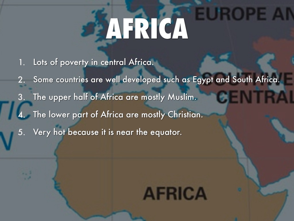 The upper half of Africa are mostly Muslim.
