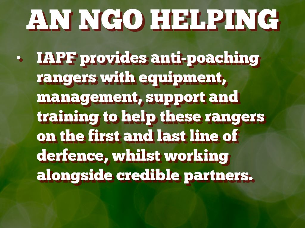 IAPF provides anti-poaching rangers with equipment, management, support and training to help these rangers on the first and last line of derfence, whilst working alongside credible partners.