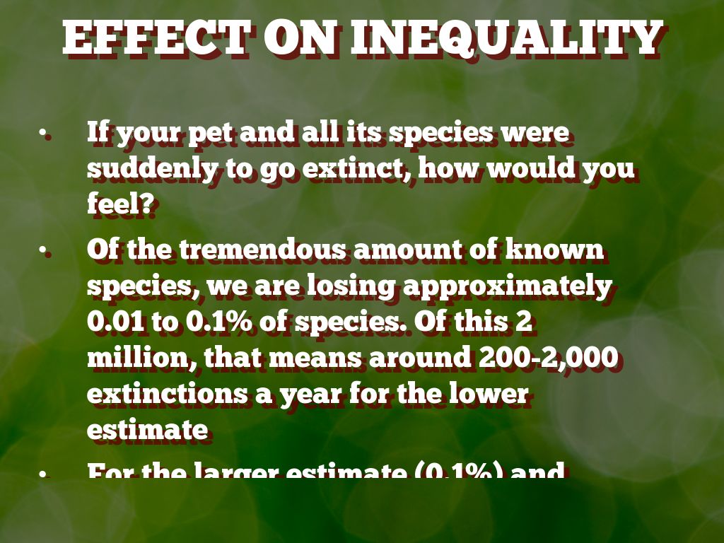 Of the tremendous amount of known species, we are losing approximately 0.01 to 0.1% of species. Of this 2 million, that means around 200-2,000 extinctions a year for the lower estimate