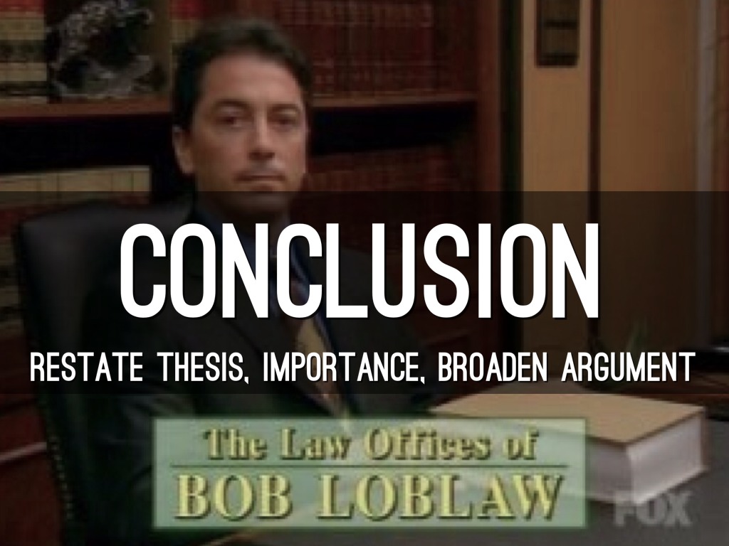 RESTATE THESIS, IMPORTANCE, BROADEN ARGUMENT