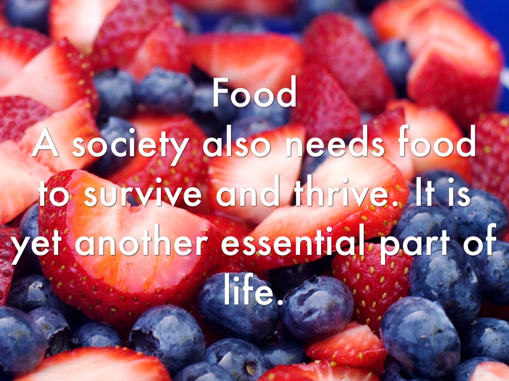 A society also needs food to survive and thrive. It is yet another essential part of life.