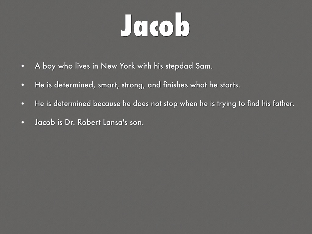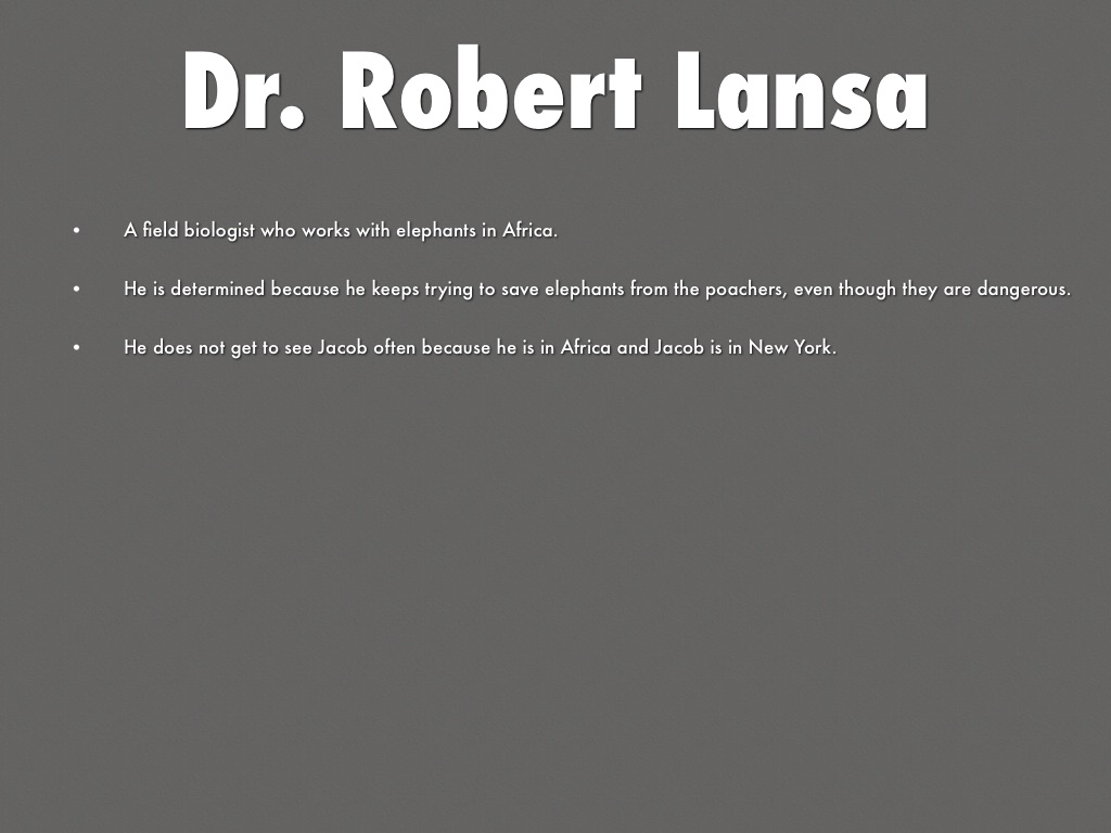 • He does not get to see Jacob often because he is in Africa and Jacob is in New York.