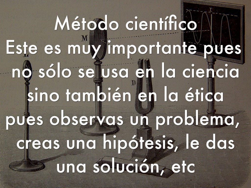 Este es muy importante pues no sólo se usa en la ciencia sino también en la ética pues observas un problema, creas una hipótesis, le das una solución, etc