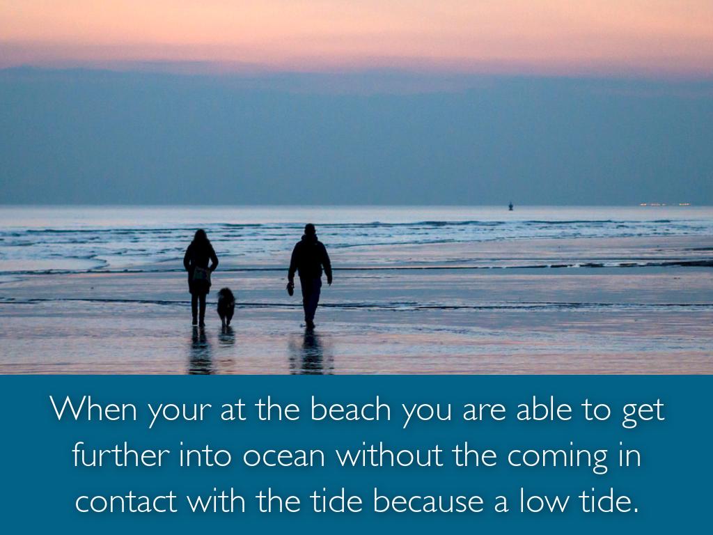 When your at the beach you are able to get further into ocean without the coming in contact with the tide because a low tide.