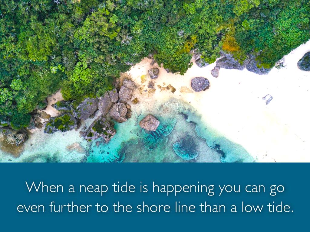 When a neap tide is happening you can go even further to the shore line than a low tide.