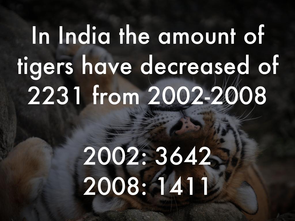 In India the amount of tigers have decreased of 2231 from 2002-2008