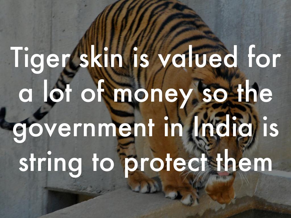 Tiger skin is valued for a lot of money so the government in India is string to protect them