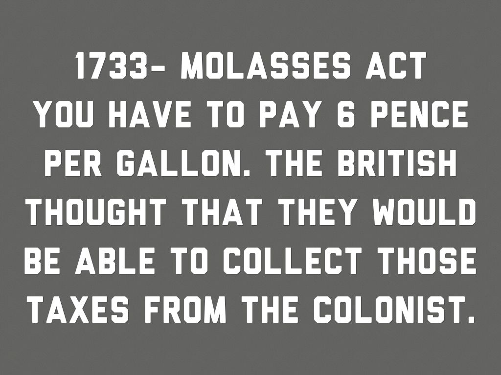 You have to pay 6 pence per gallon. The British thought that they would be able to collect those taxes from the colonist.