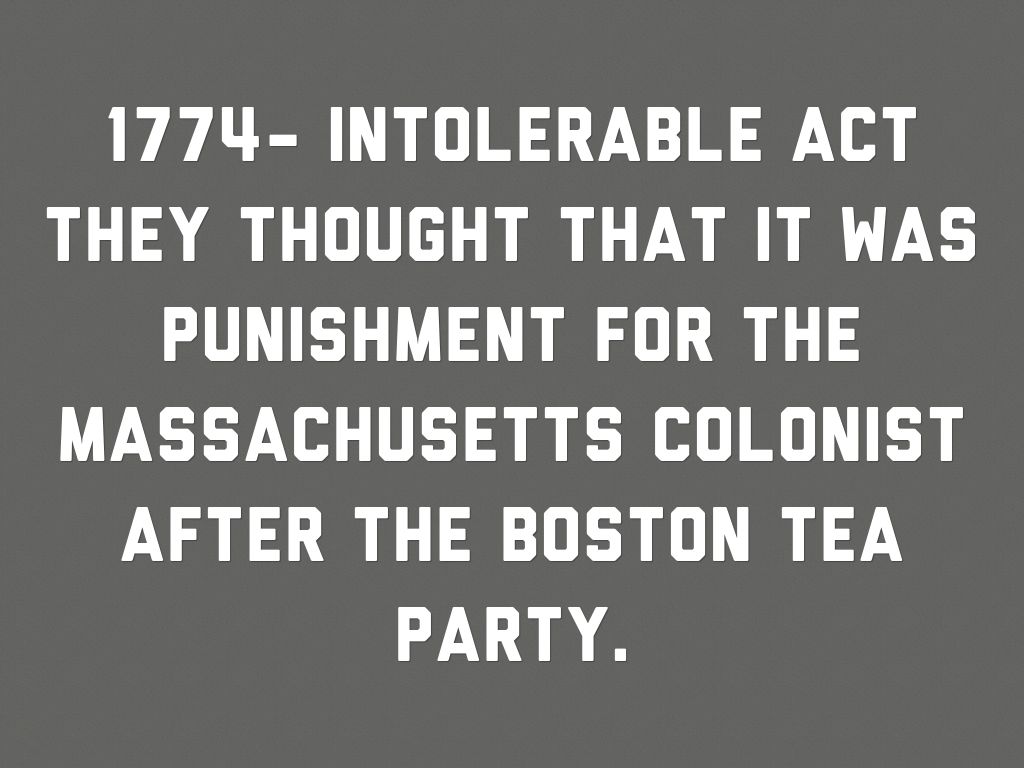 They thought that it was punishment for the Massachusetts Colonist after the Boston tea party.