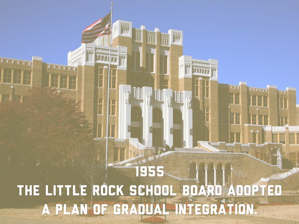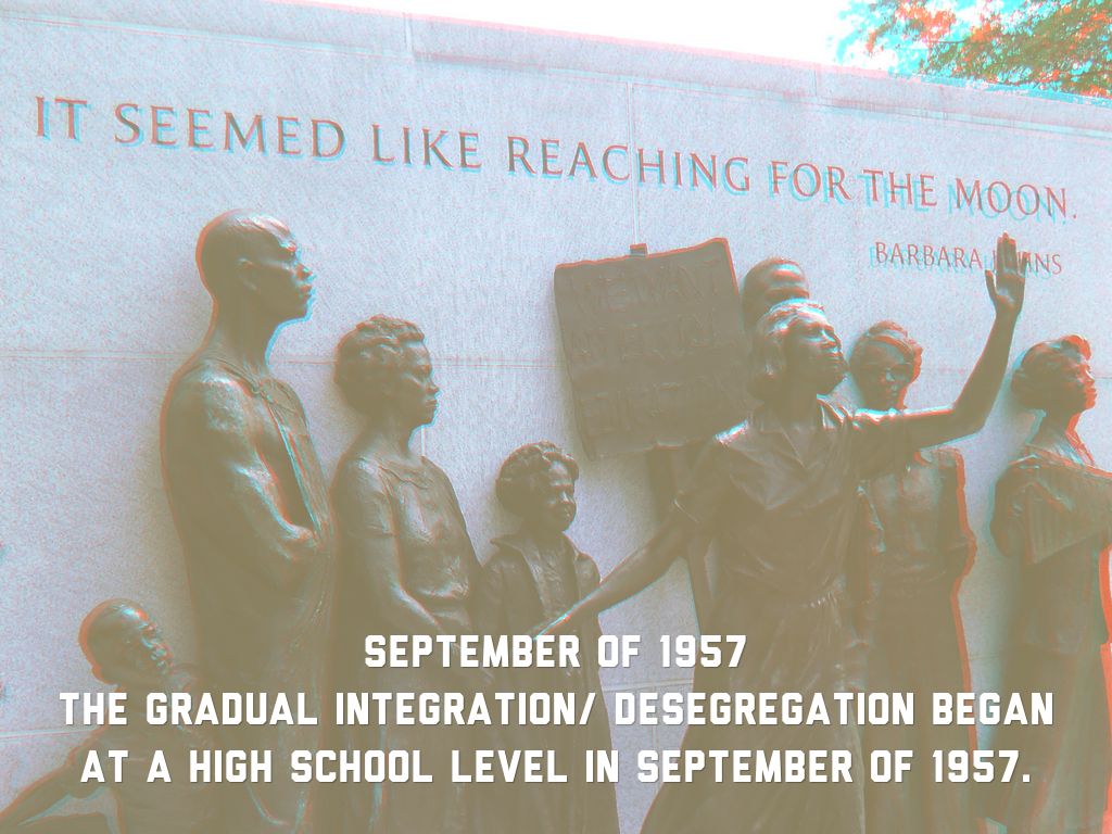 The gradual integration/ desegregation began at a high school level in September of 1957.