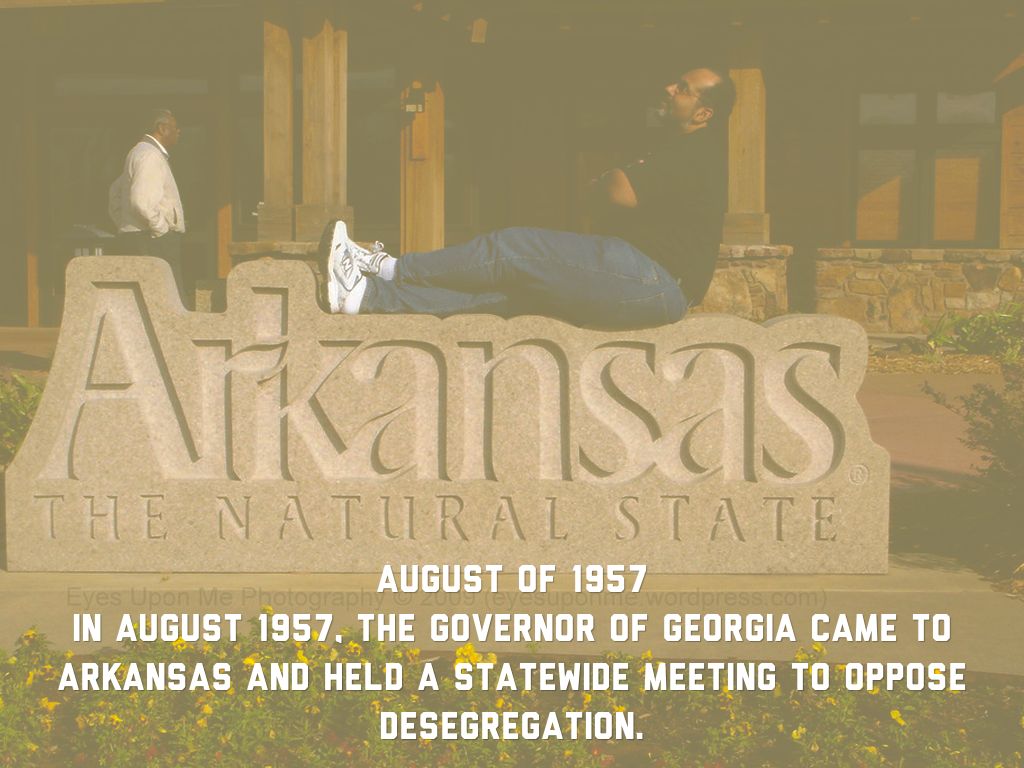 In August 1957, the governor of Georgia came to Arkansas and held a statewide meeting to oppose desegregation.