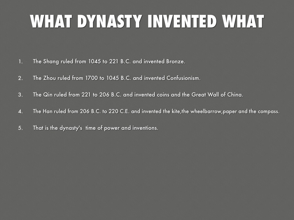 The Shang ruled from 1045 to 221 B.C. and invented Bronze.