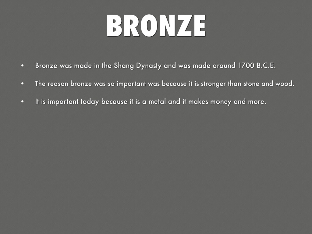 Bronze was made in the Shang Dynasty and was made around 1700 B.C.E.