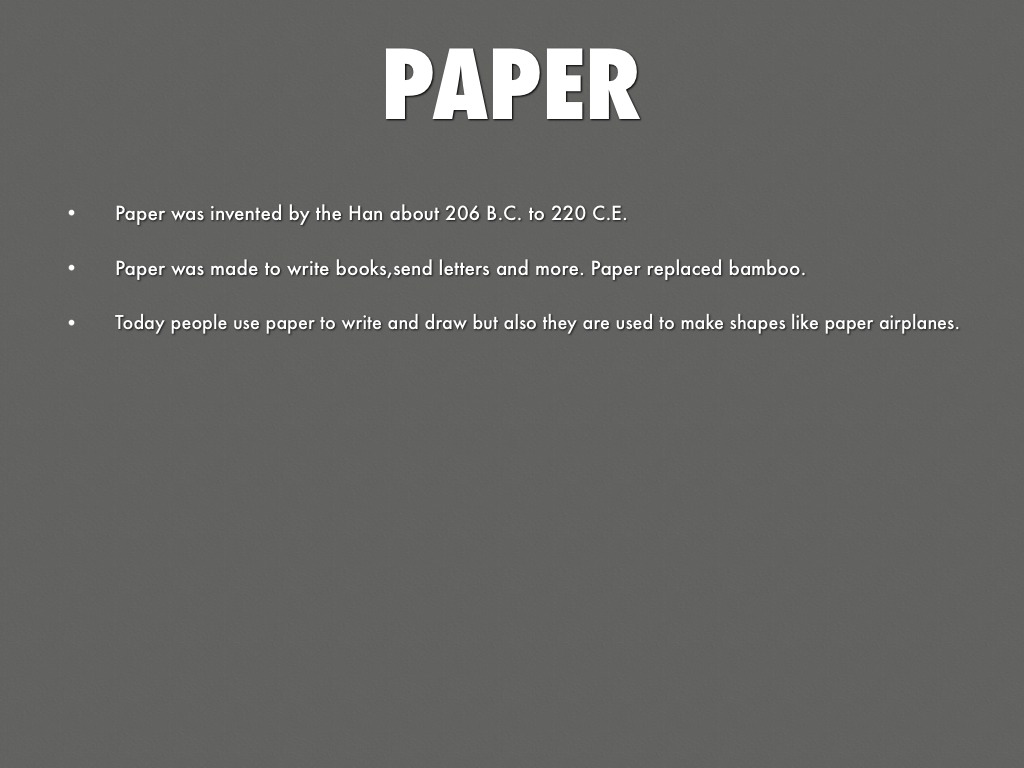 Today people use paper to write and draw but also they are used to make shapes like paper airplanes.