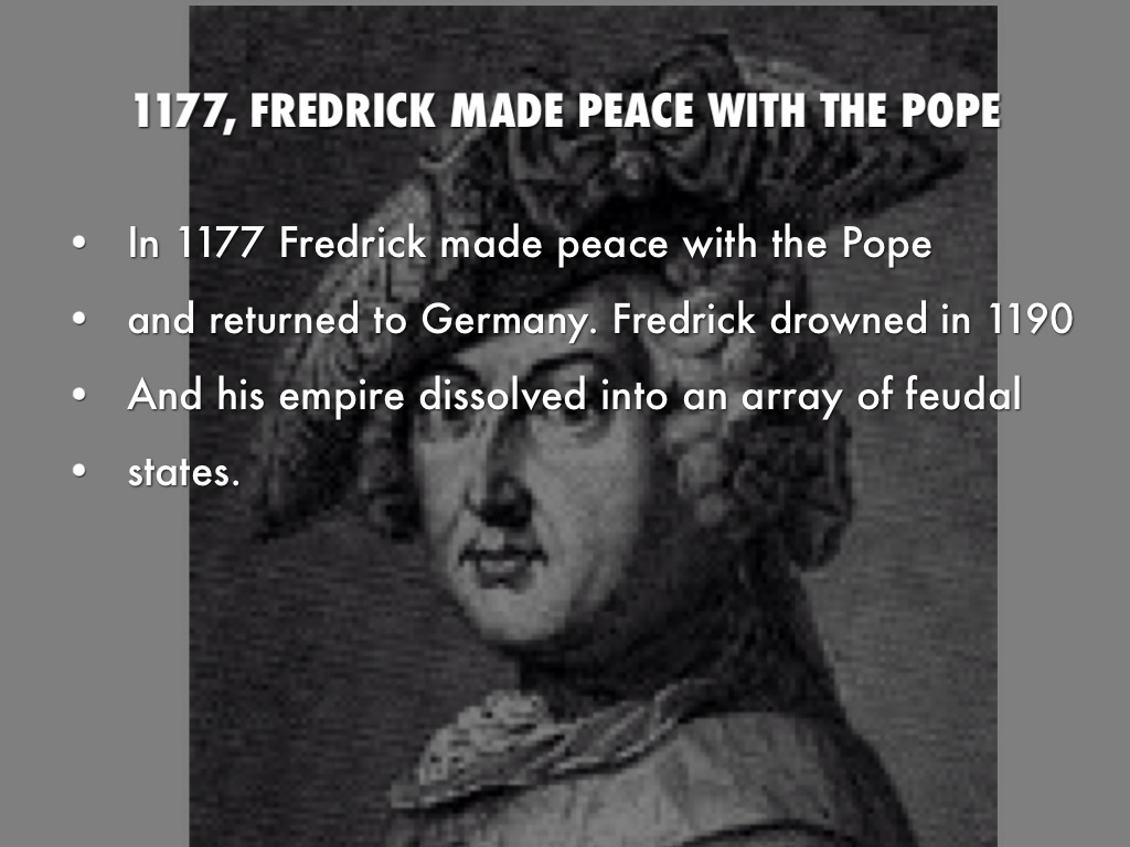 In 1177 Fredrick made peace with the Pope
