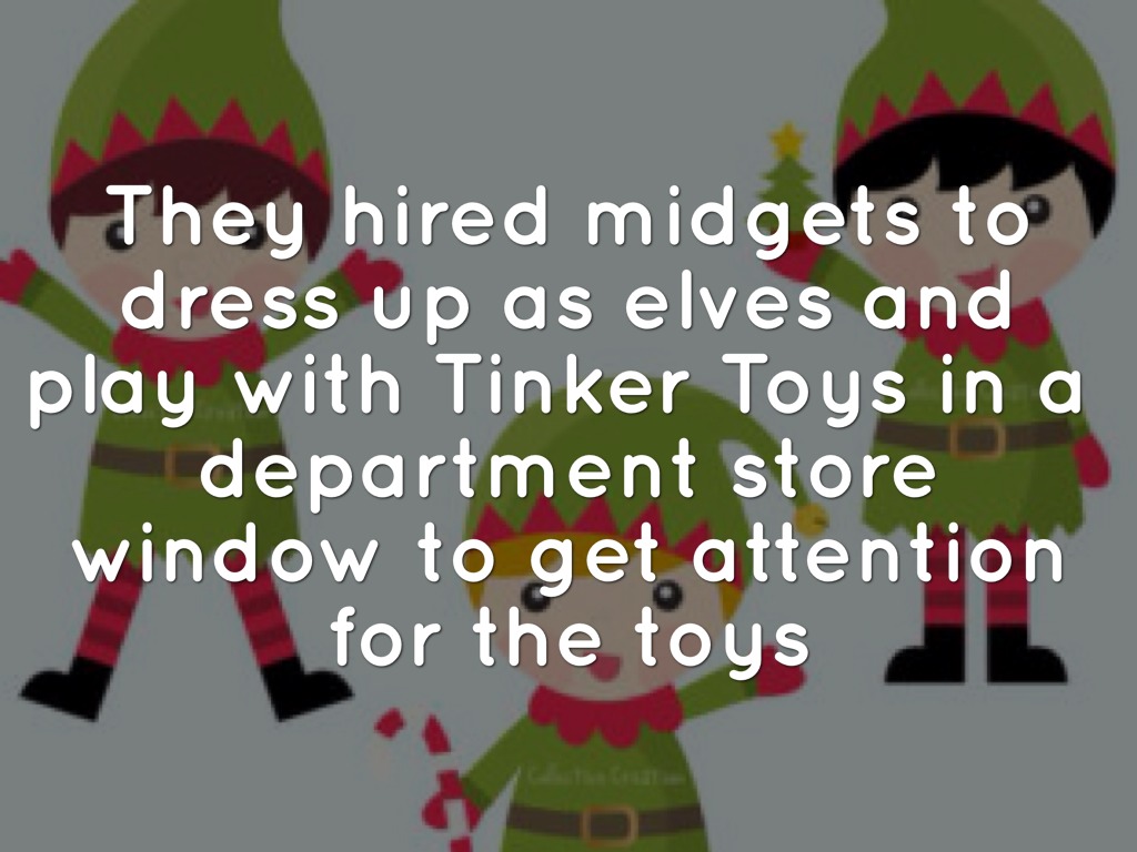 They hired midgets to dress up as elves and play with Tinker Toys in a department store window to get attention for the toys