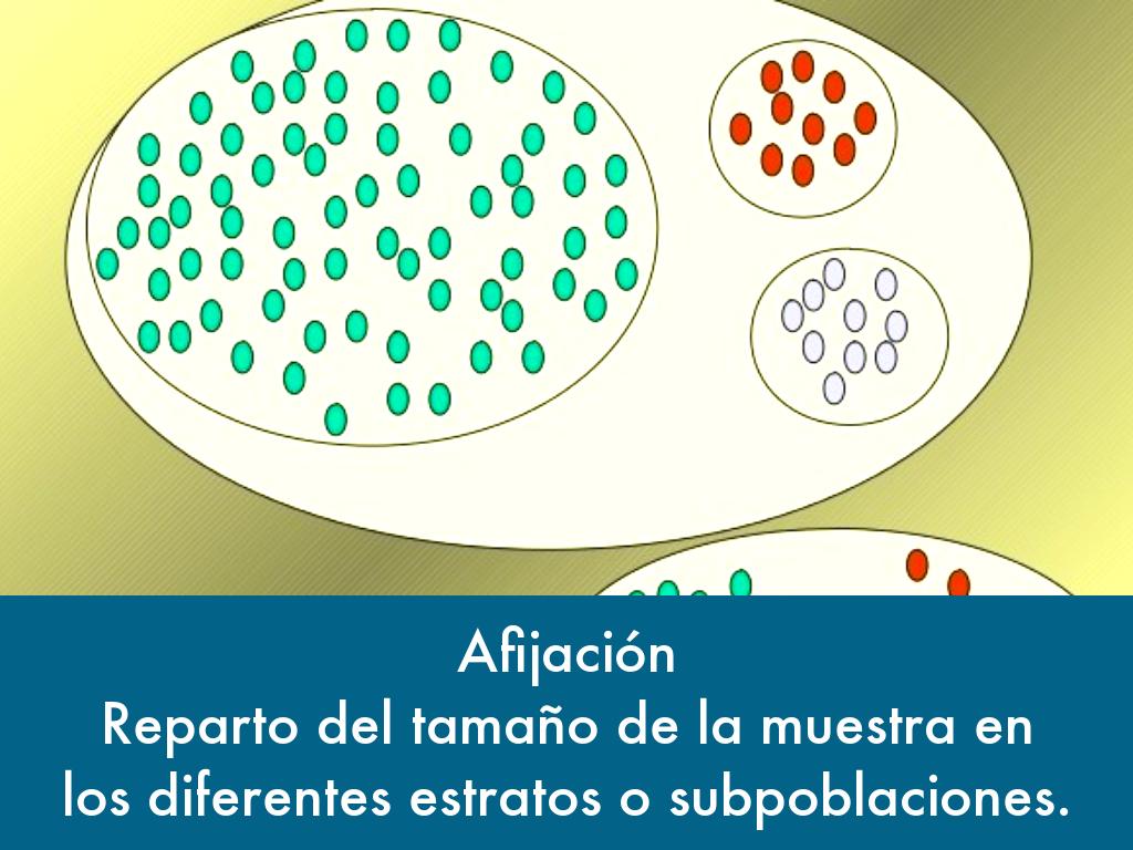 Afijación proporcional: Cada estrato tiene un número de elementos en la muestra proporcional a su tamaño.
