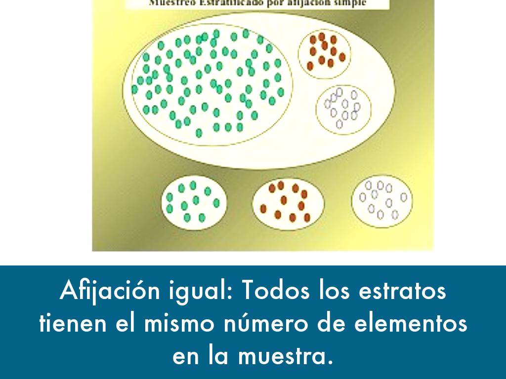 Afijación igual: Todos los estratos tienen el mismo número de elementos en la muestra.