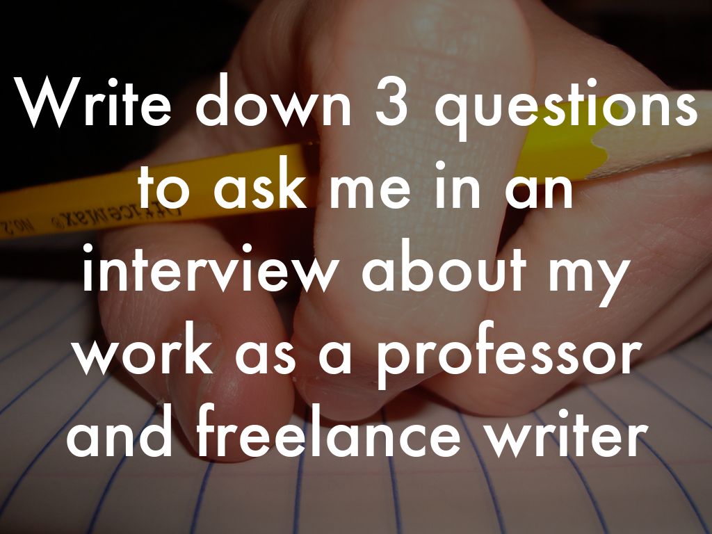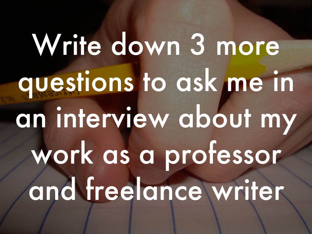 Write down 3 questions to ask me in an interview about my work as a professor and freelance writer