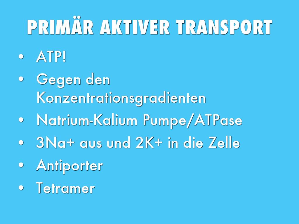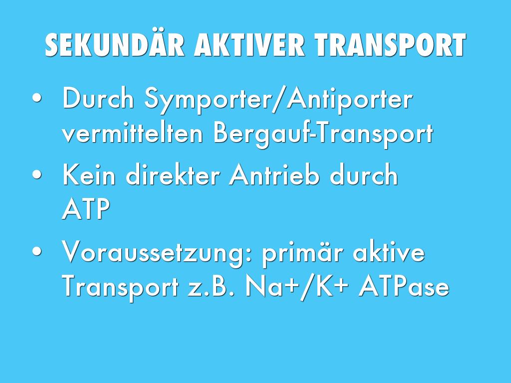 Voraussetzung: primär aktive Transport z.B. Na+/K+ ATPase